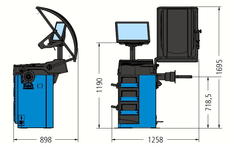Wyważarka należy do gamy modeli firmy RAVAGLIOLI, nowe oprogramowanie i szata graficzna, pomiar bicia felgi przy użyciu ramienia pomiarowego.