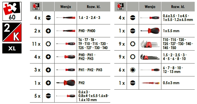 Zestaw wkrętaków do wózków XL VIGOR - V5170